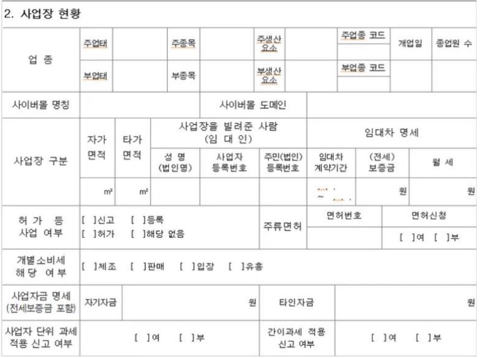 사업자등록 신청서 – 개인사업자용
