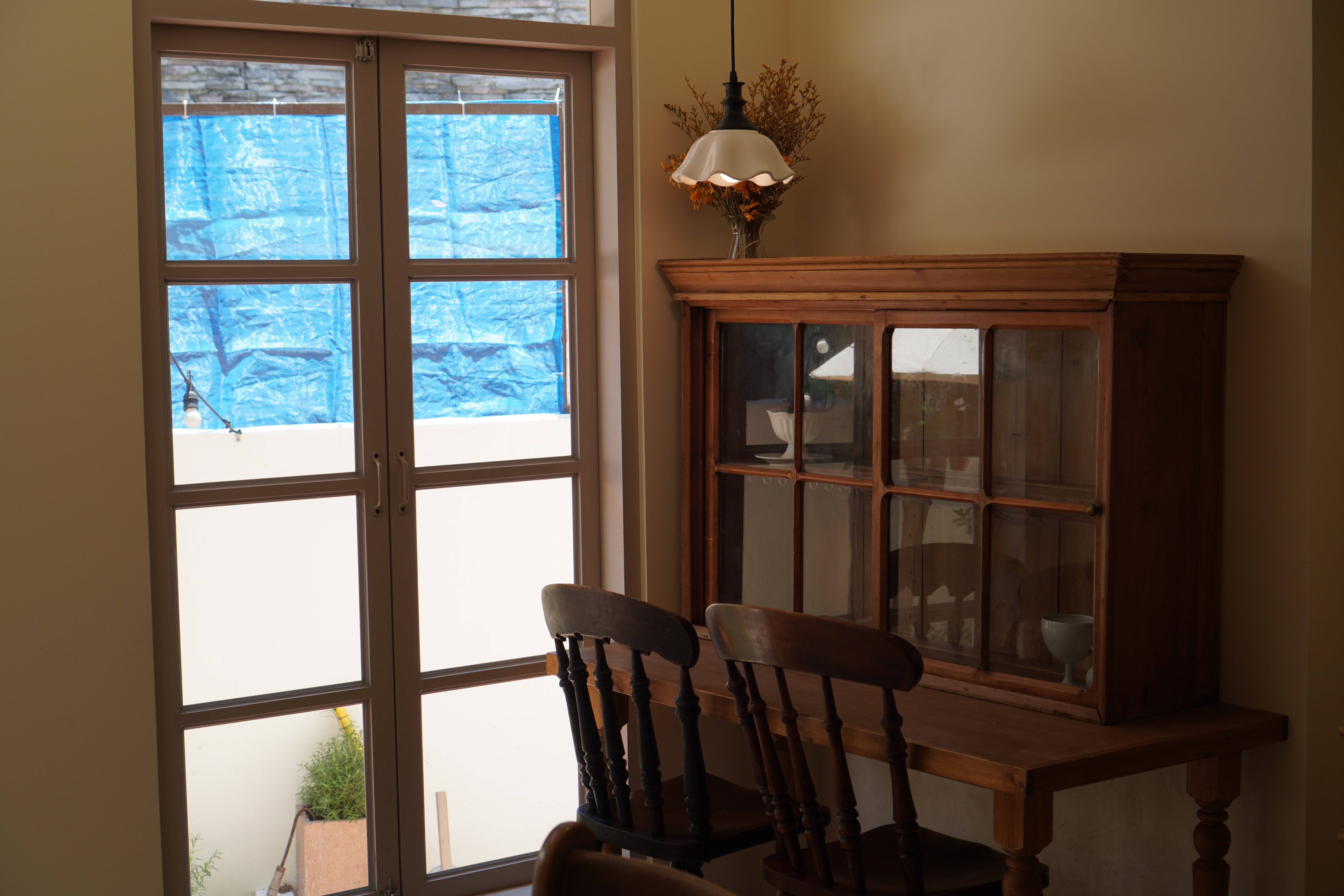 가게 창가 쪽이 통유리라 야외 정원이 잘 보입니다. 푸릇푸릇한 감성에 빈티지하고 멋드러진 조명이 있으니 너무 분위기 있네요. 인테리어 완전 취저!✨