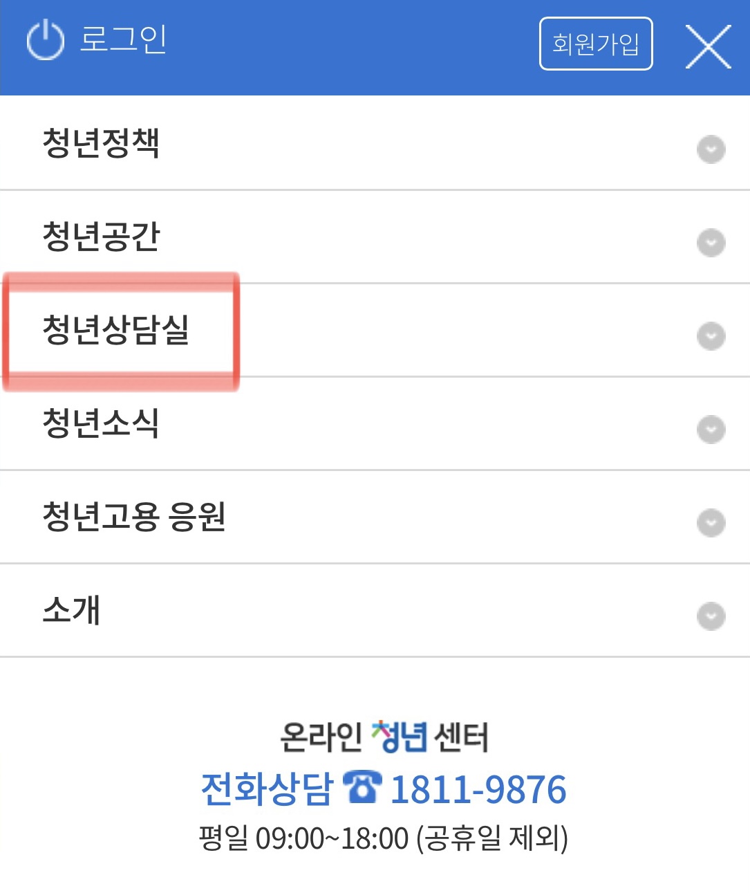 - 심층(전문)상담 예약 신청은 온라인 청년센터 회원가입 및 구직회원으로 전환한 후 이용이 가능합니다.