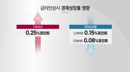 가계부채가 해마다 불어나고 있는 가운데 금리를 0.25% 포인트 올리면 경제성장률은 0.15% 포인트 낮아집니다. 부채가 적을 때와 비교하여 하락폭이 크기 때문에 빚이 많을수록 타격이 큽니다. 그러니 빚의 여부에 따라 자금 관리를 다르게 운용해야 합니다.