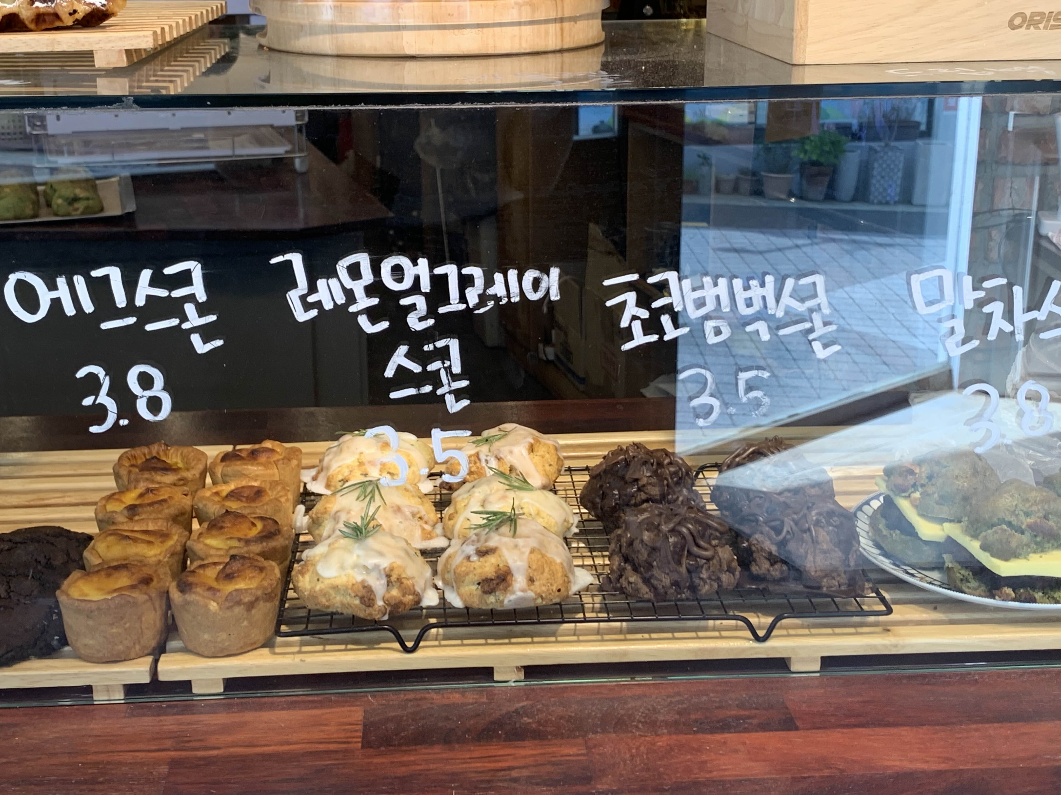 쿠키와 스콘도 종류가 많았습니다. 독특했던 건 쑥 쿠키가 무척 궁금해지더라고요. 스콘도 레몬 얼그레이 스콘, 말차 스콘 등 다른 곳에 잘 없었던 스콘들이 있었어요.