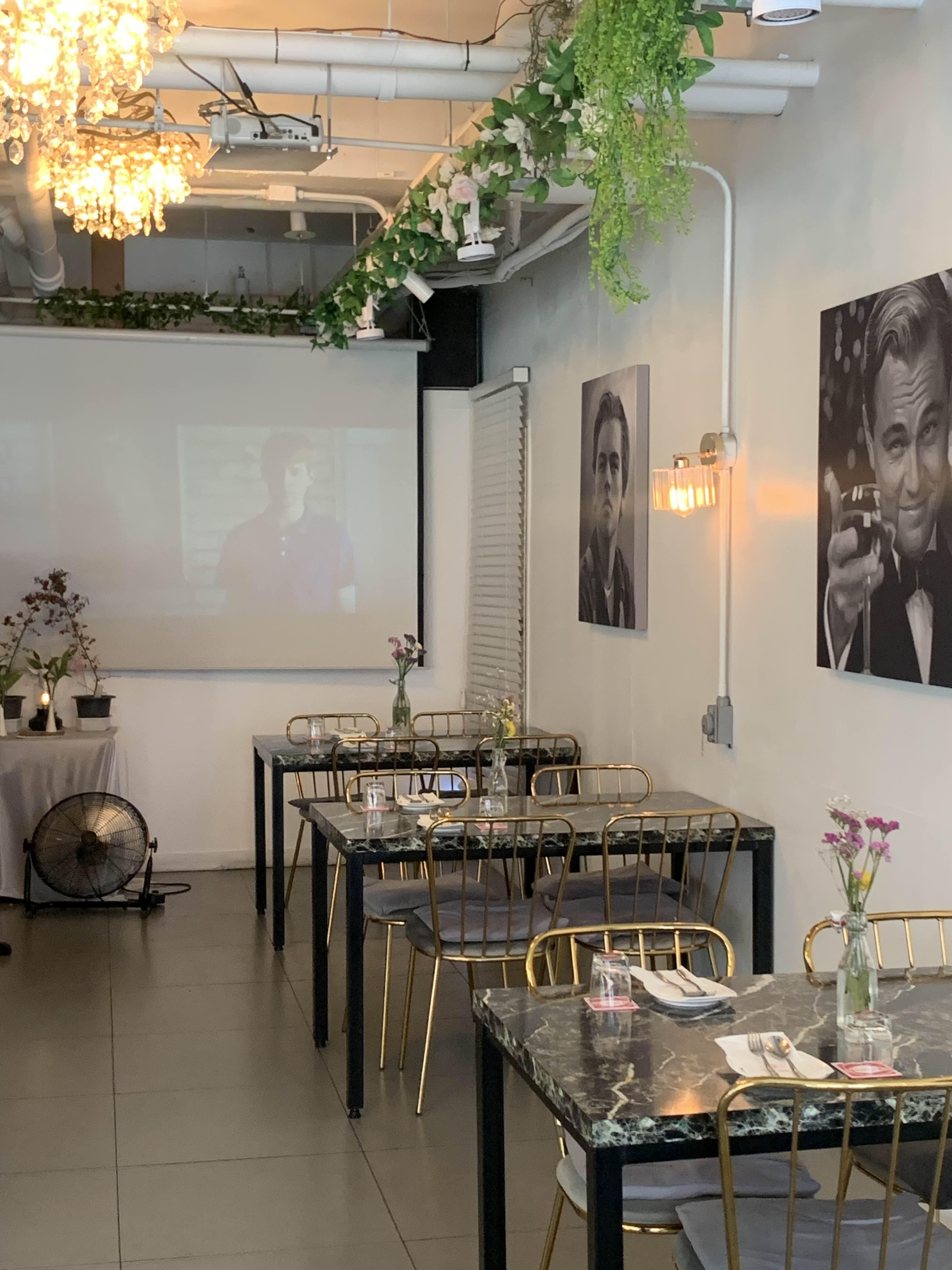 한쪽 벽면에는 영화를 틀어줍니다. 너무 분위기 있죠?