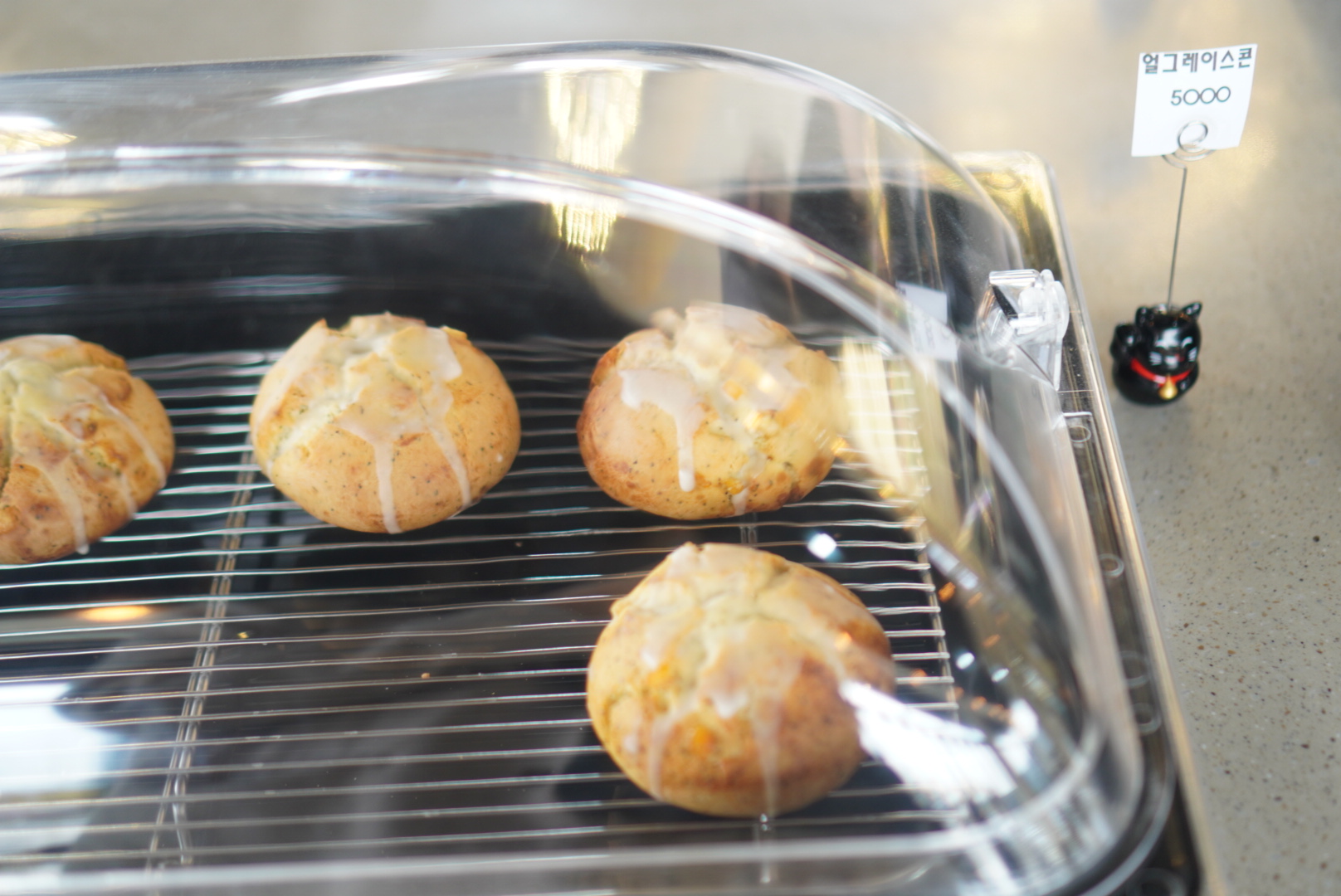 그리고 스콘종류를 많이 판매하고 있었어요. 제가 갔을 때 이미 많이 팔려서 몇 개 안 남아있었습니다. 그리고 제 앞 분은 10명이서 음료와 베이커리 가격으로 십만 원 결제하시고 잔뜩 가시더라고요. 사람이 모며 있는 모습도 오랜만에 봤을뿐더러 탁 트인 대형 카페에서 빵 냄새를 맡으니 기분 좋아집니다.