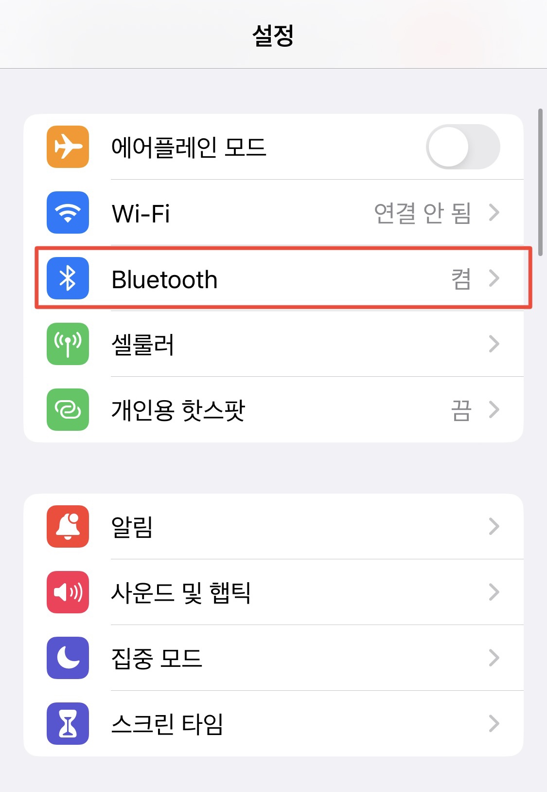 Bluetooth에 들어가 블루투스를 켭니다. 그리고 에어팟을 연결합니다.