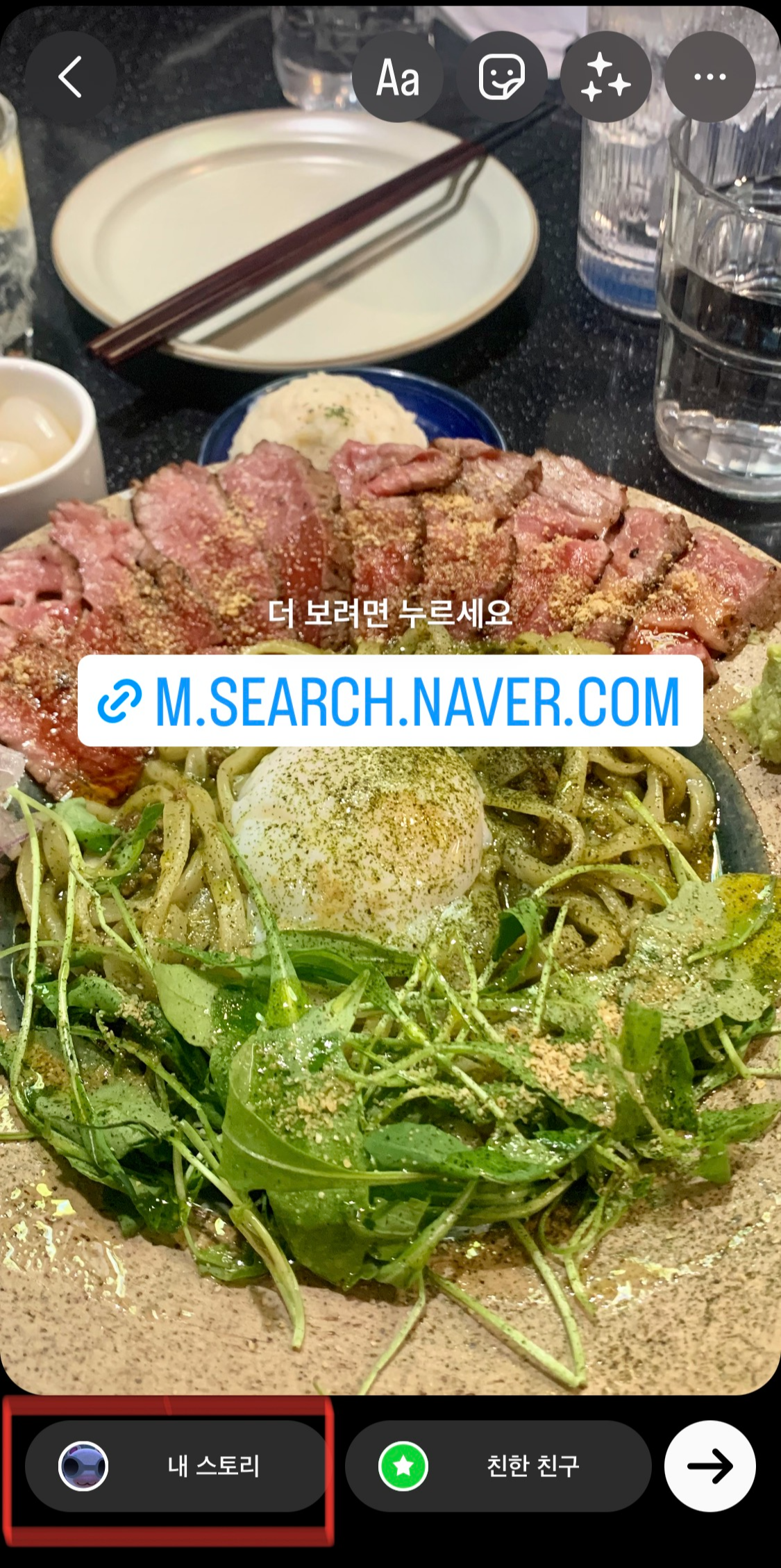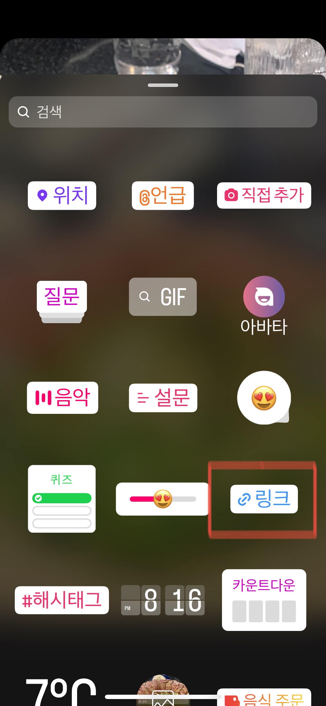 인스타그램 스토리를 보다 보면 사진 위에 링크가 함께 첨부돼있는 모습을 발견할 수 있습니다. 보통 스토어팜이나 공구 링크, 블로그 주소, 신문기사 등 여러 가지 종류의 URL을 함께 올리기도 합니다. 저는 제가 여행 갔을 때 갔던 맛있는 음식점 링크를 스토리에 사진과 함께 올려보겠습니다.