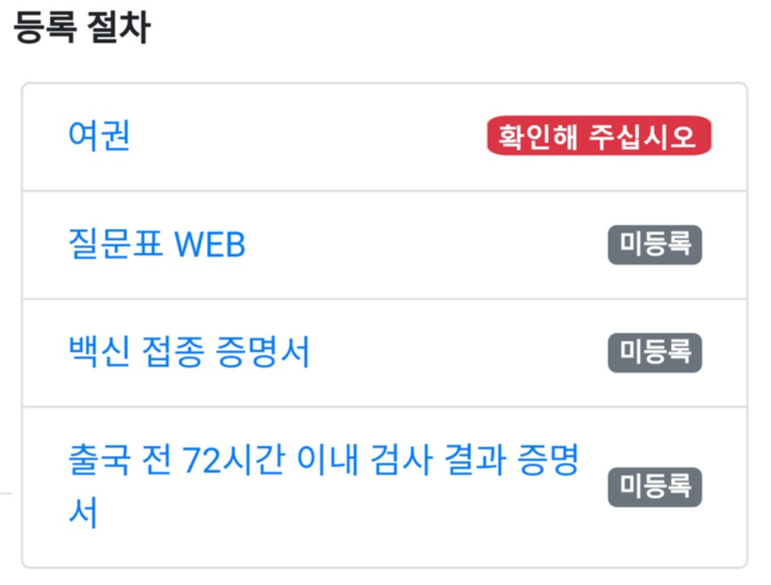 작성한 내용을 확인 후에 예정등록을 눌러 마무리합니다. 여행 일정 등록 이후에 검역 절차를 사전 등록할 수 있습니다.