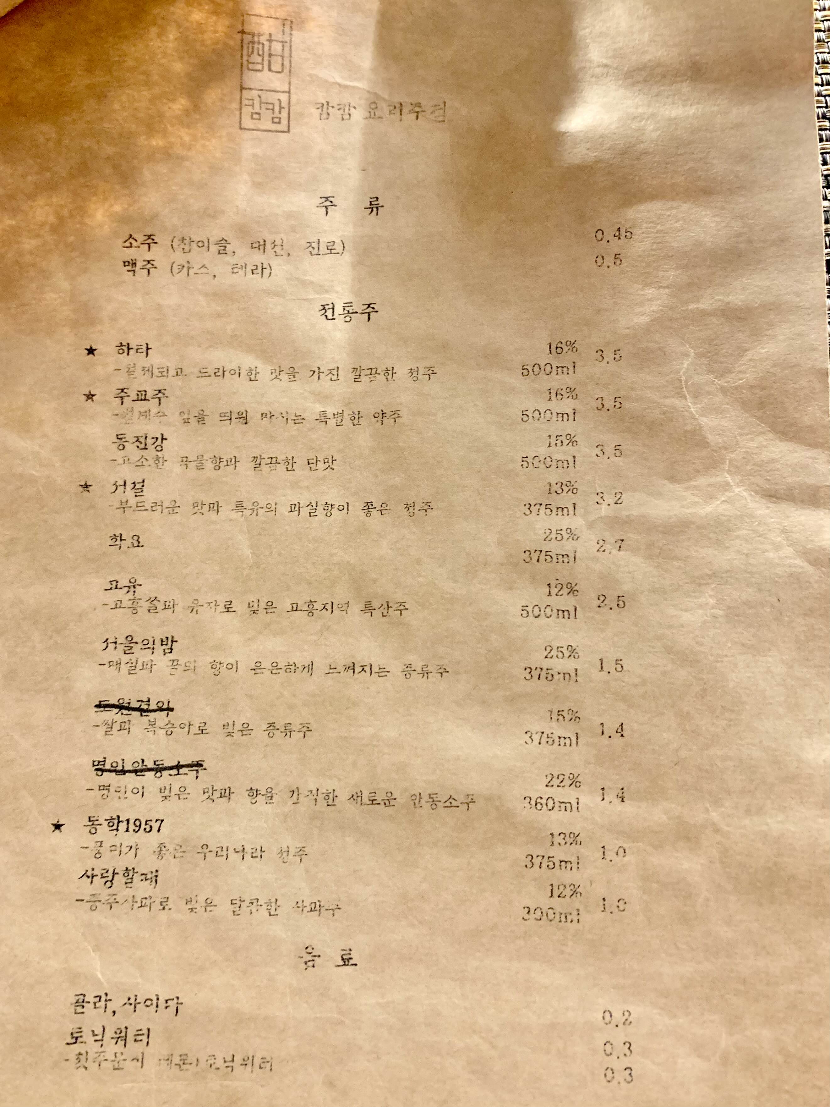 캄캄 인기메뉴는