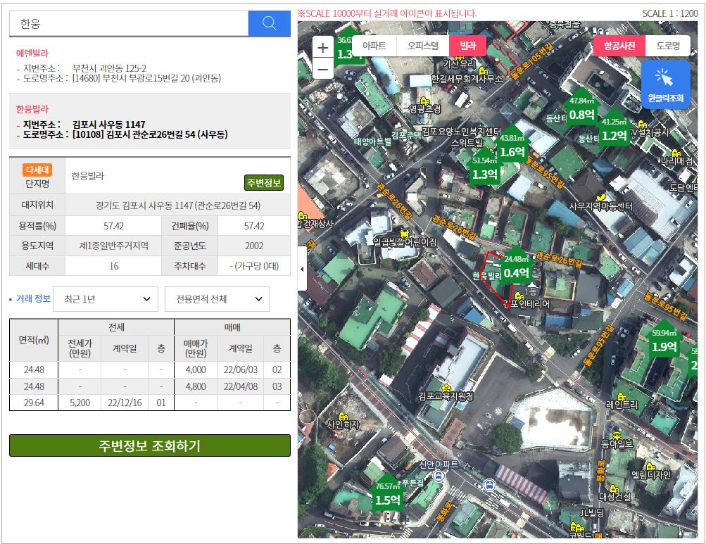 검색지역의 최근거래정보가 표시됩니다. 최근 마지막 거래내역을 기반으로 매매 가격 대비 전세 가격비율을 확인할 수 있습니다. 또한 이 사이트에서 깡통전세 유형정보·부동산 계약 전/후 할 일·깡통전세 피해예방상담센터도 함께 운영합니다.