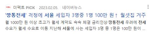 2022년 12월 1일에 나온 신규 서비스입니다. 벌써 하루 사용량이 평균 32만 건에 이르고 있을 정도로 많은 사람들이 이 사이트를 이용합니다. 이 서비스로 이 집의 전세가격이 사고파는 가격보다 높아서 깡통인지 아닌지 한눈에 확인할 수 있습니다.