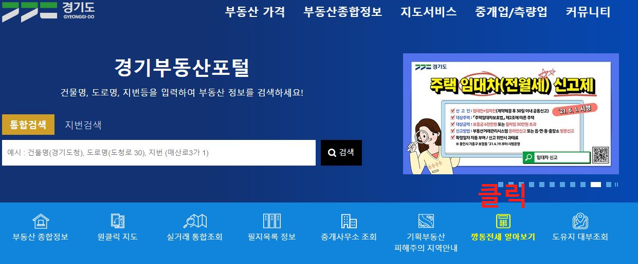 경기부동산포털에 접속합니다. 깡통전세 알아보기 메뉴를 클릭합니다.