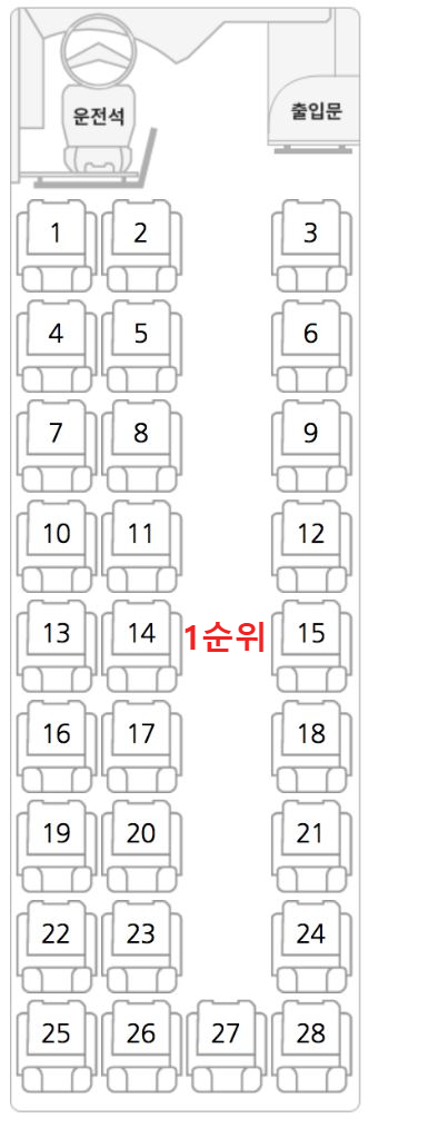- 우등버스(28인승 기준) 추천 좌석