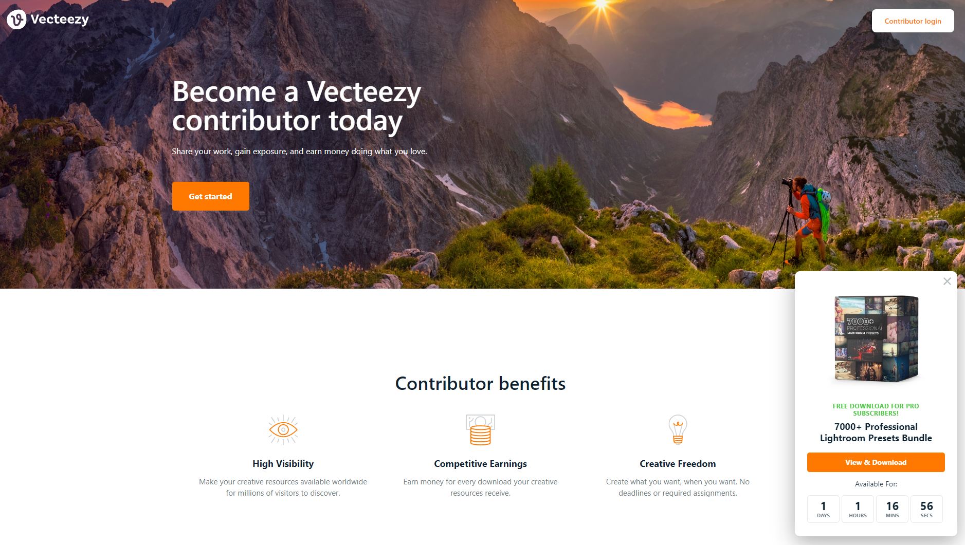 스톡 사진, 스톡 비디오 장면 또는 백터 그래픽을 벡티지에 제출하여 돈을 벌 수 있습니다. 사진을 올리는 사용자와 벡티지 간에 수익은 50:50으로 나눕니다. 또한 다른 회원을 추천하여 돈을 벌 수 있는 추천제도도 있습니다.