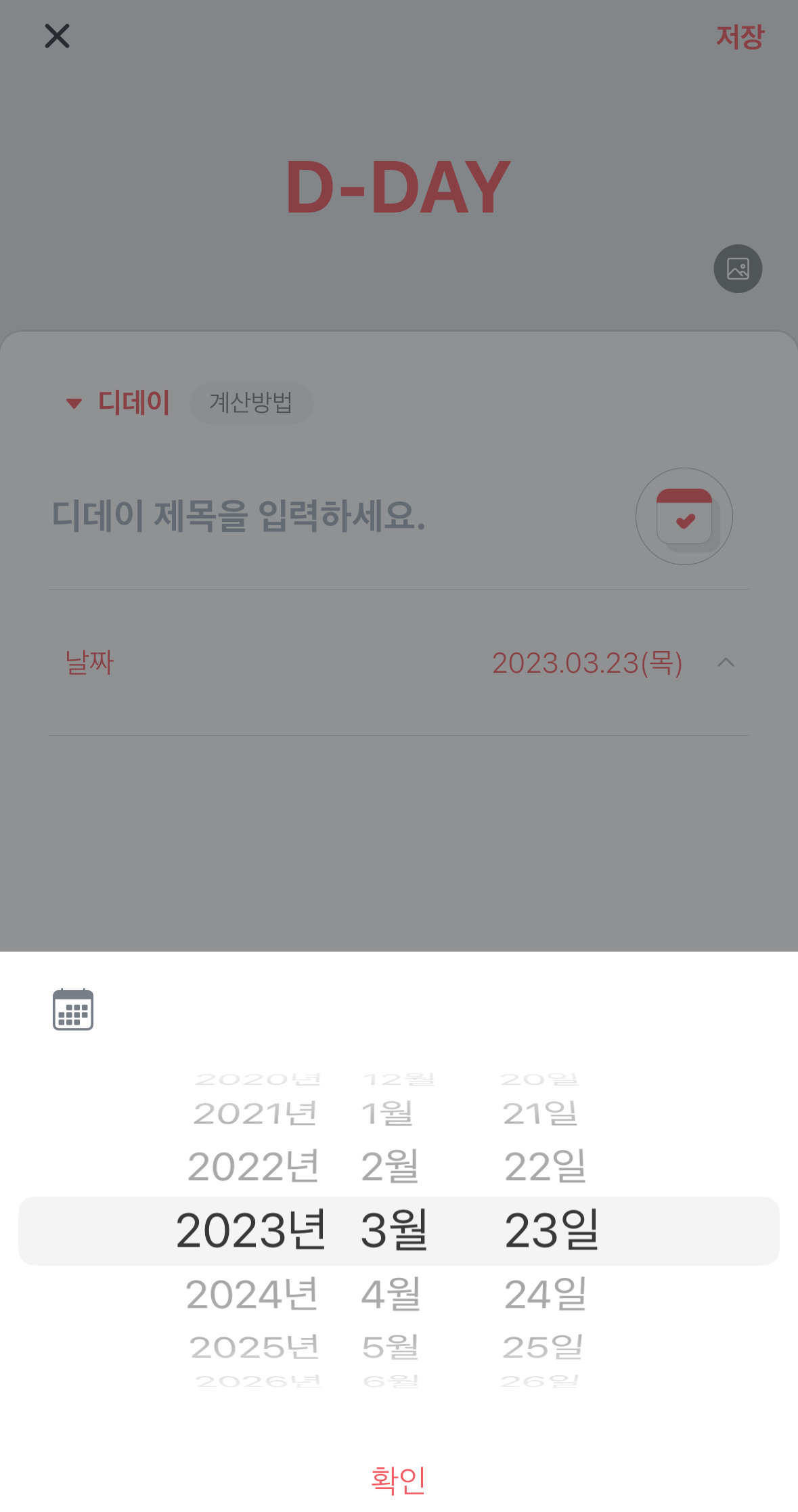 새로운 디데이 설정을 위해 날짜를 등합니다.