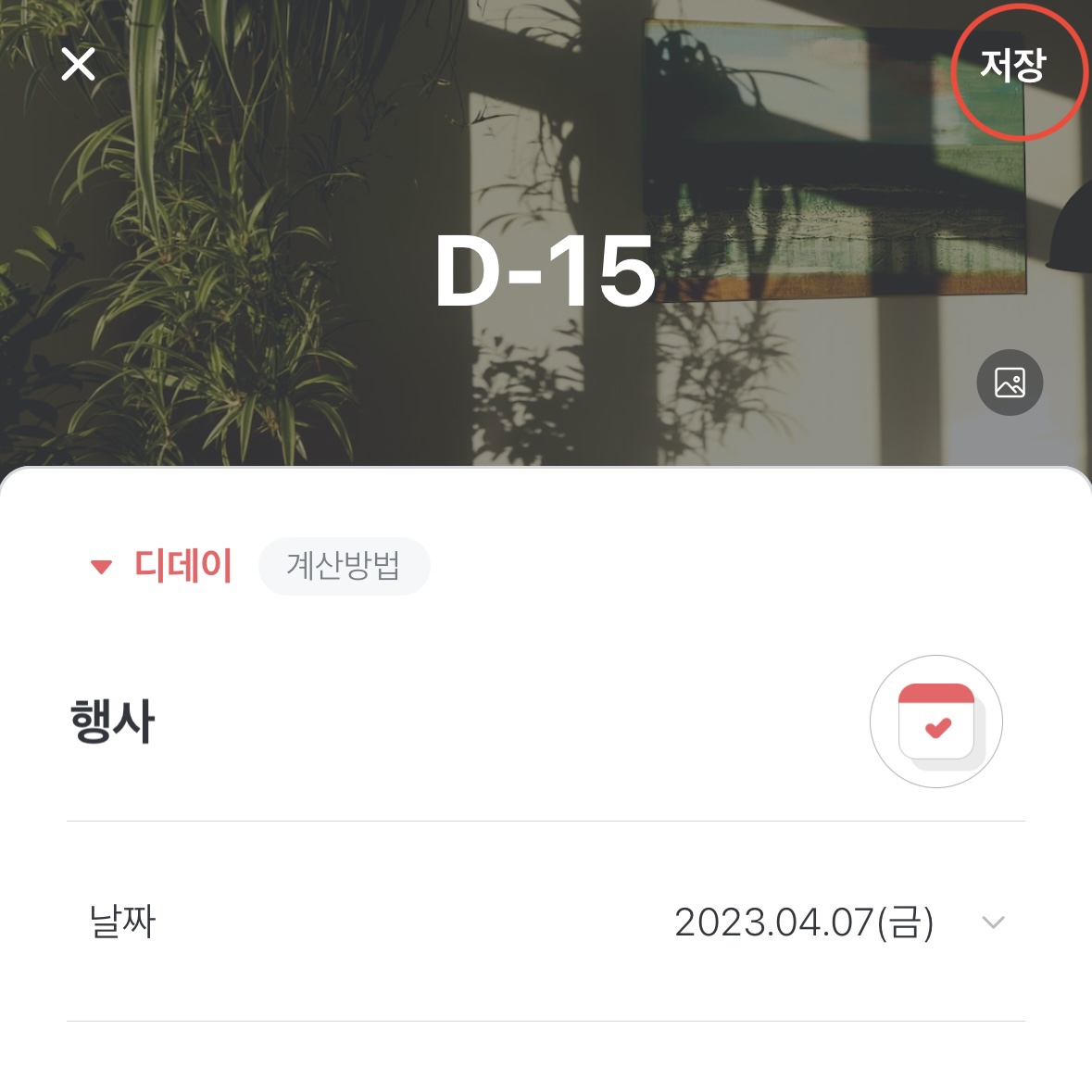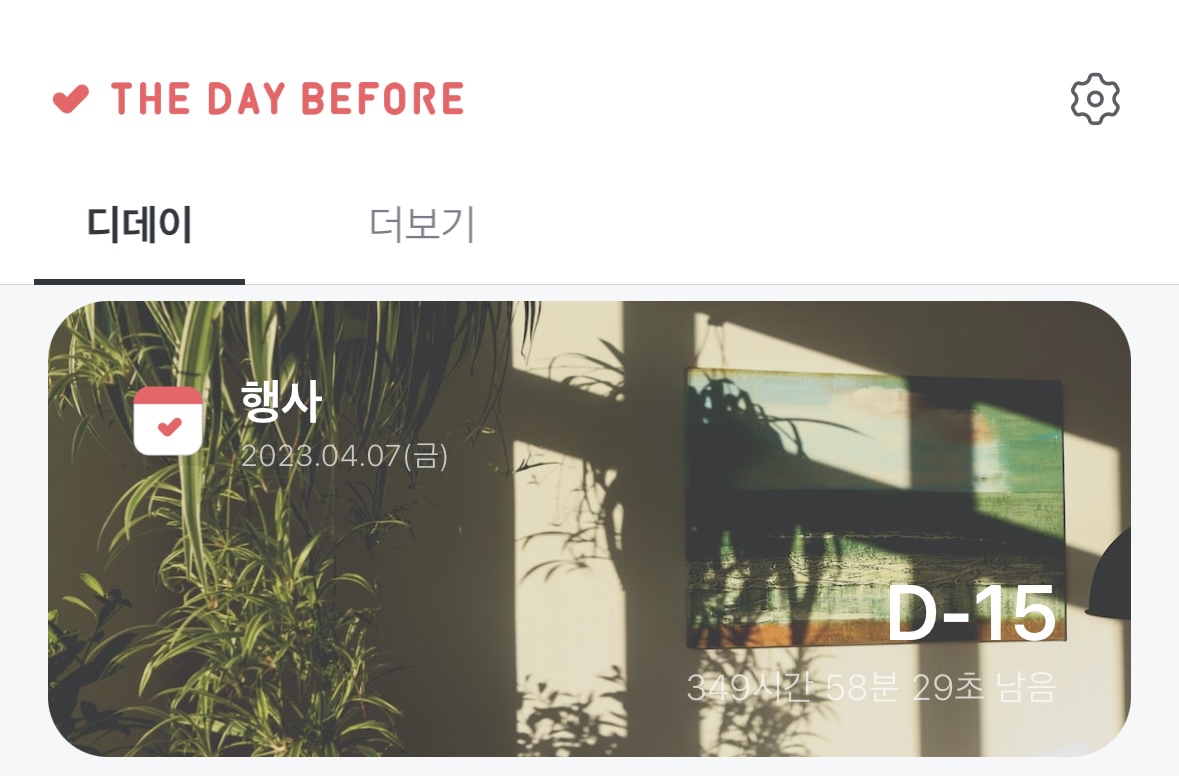 앱 홈 화면에도 디데이 설정된 것을 확인할 수 있습니다.