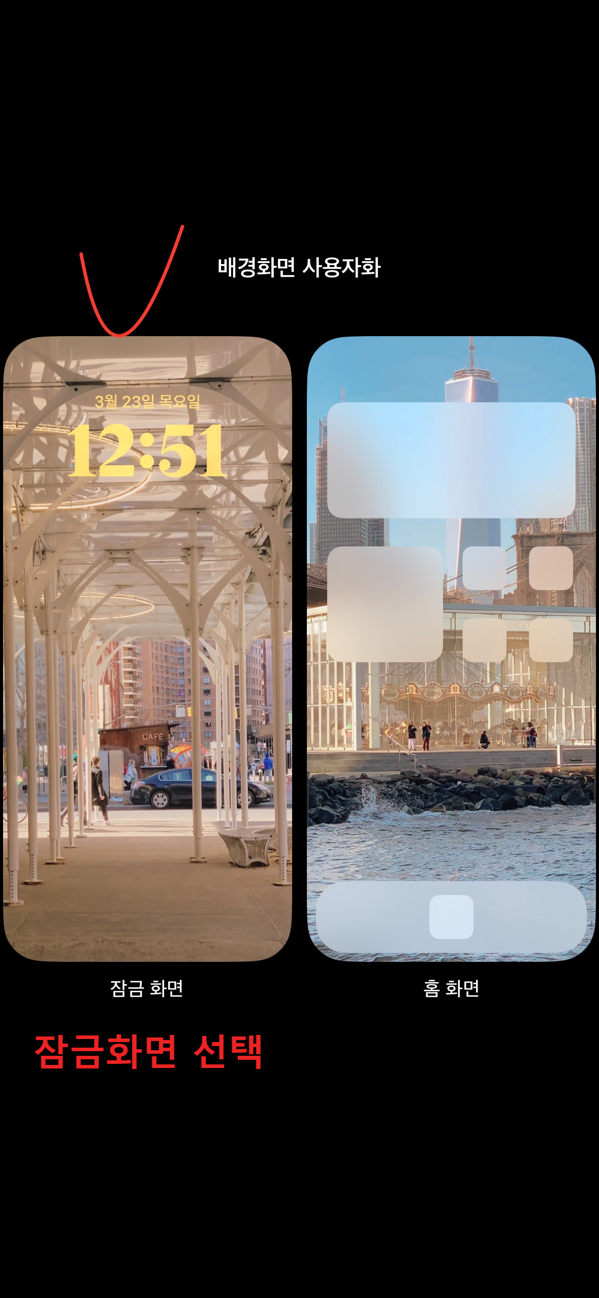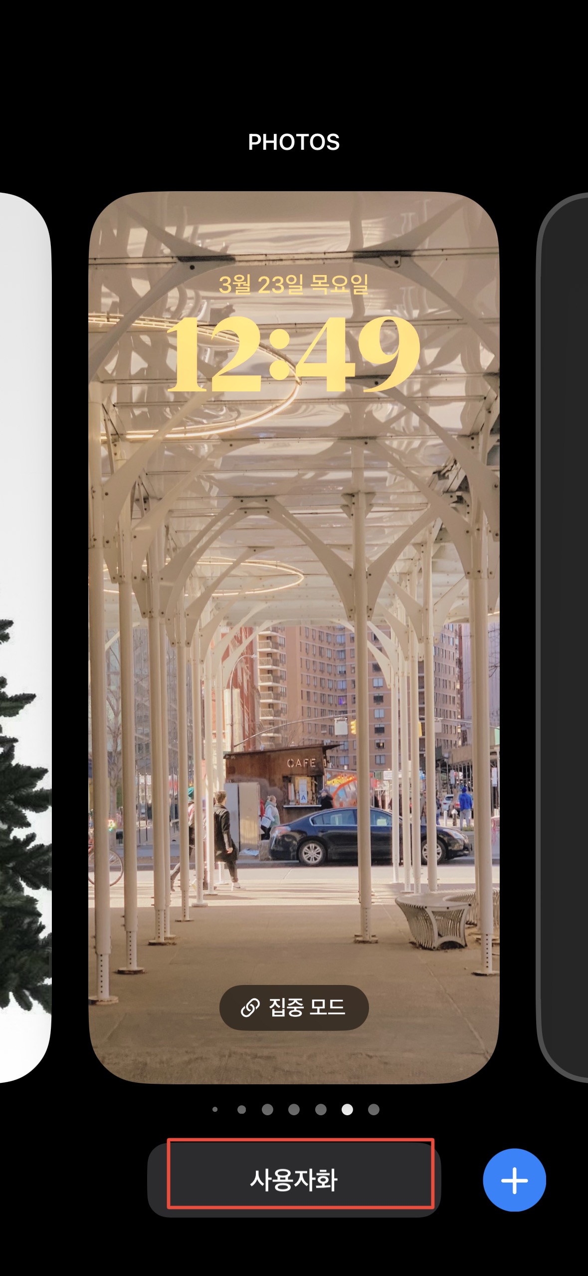 잠금화면에 디데이 위젯을 설정하여 손쉽게 확인하는 방법도 있습니다. 잠금화면을 꾹 눌러 하단에 뜨는 “사용자화”를 선택합니다. 그리고 잠금화면을 선택하여 잠금화면을 선택합니다.