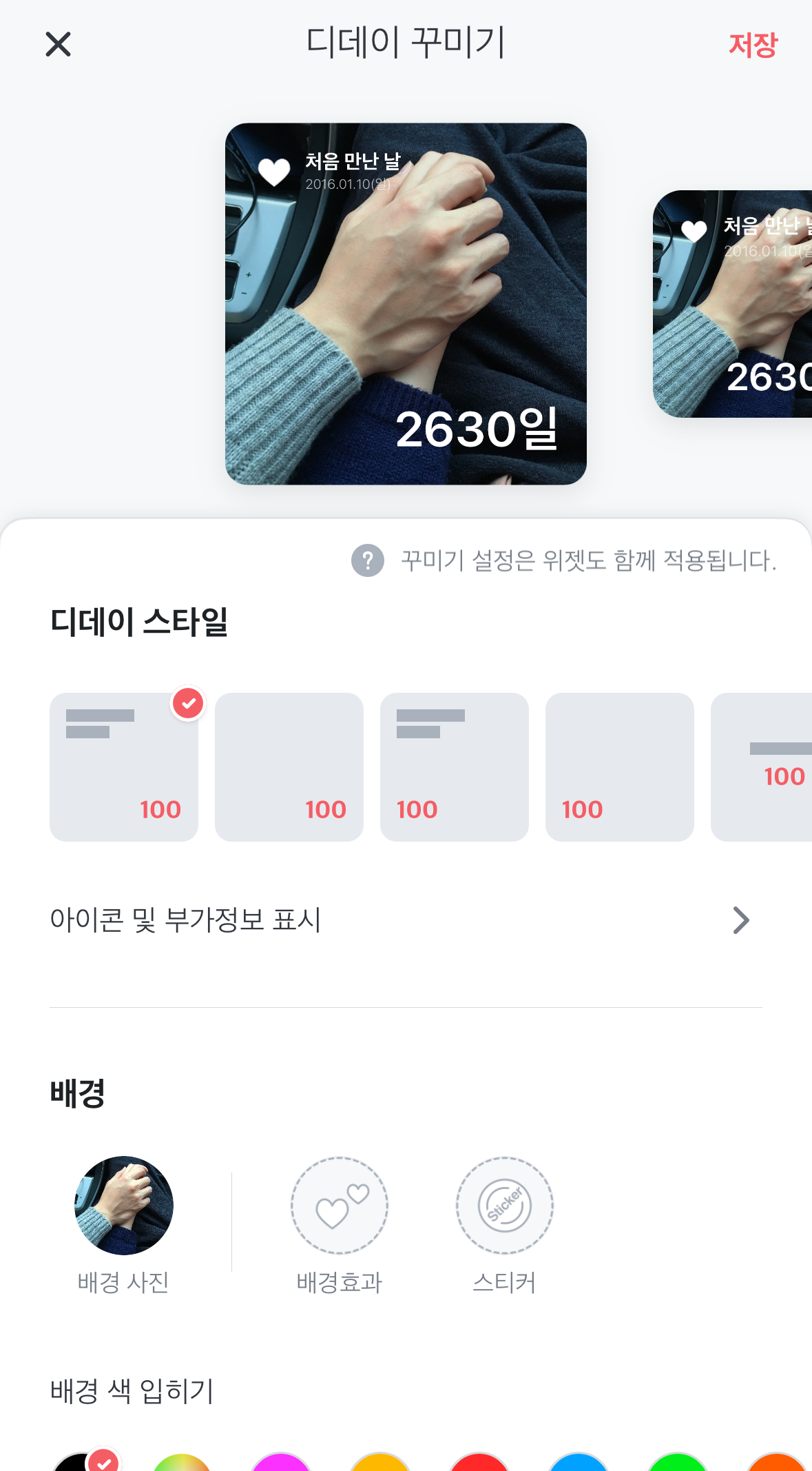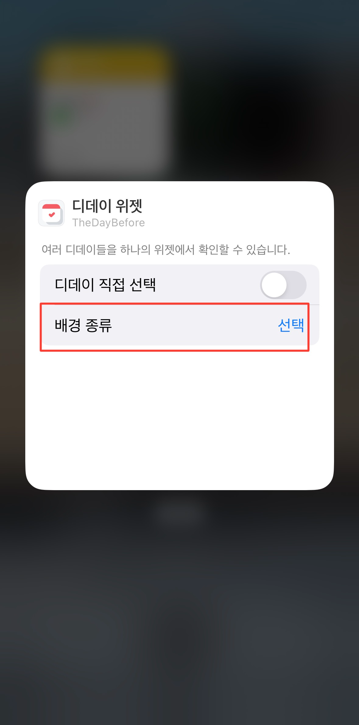 디데이 위젯의 배경도 설정가능합니다. 저는 다크한 블랙 색상을 선택하였습니다.