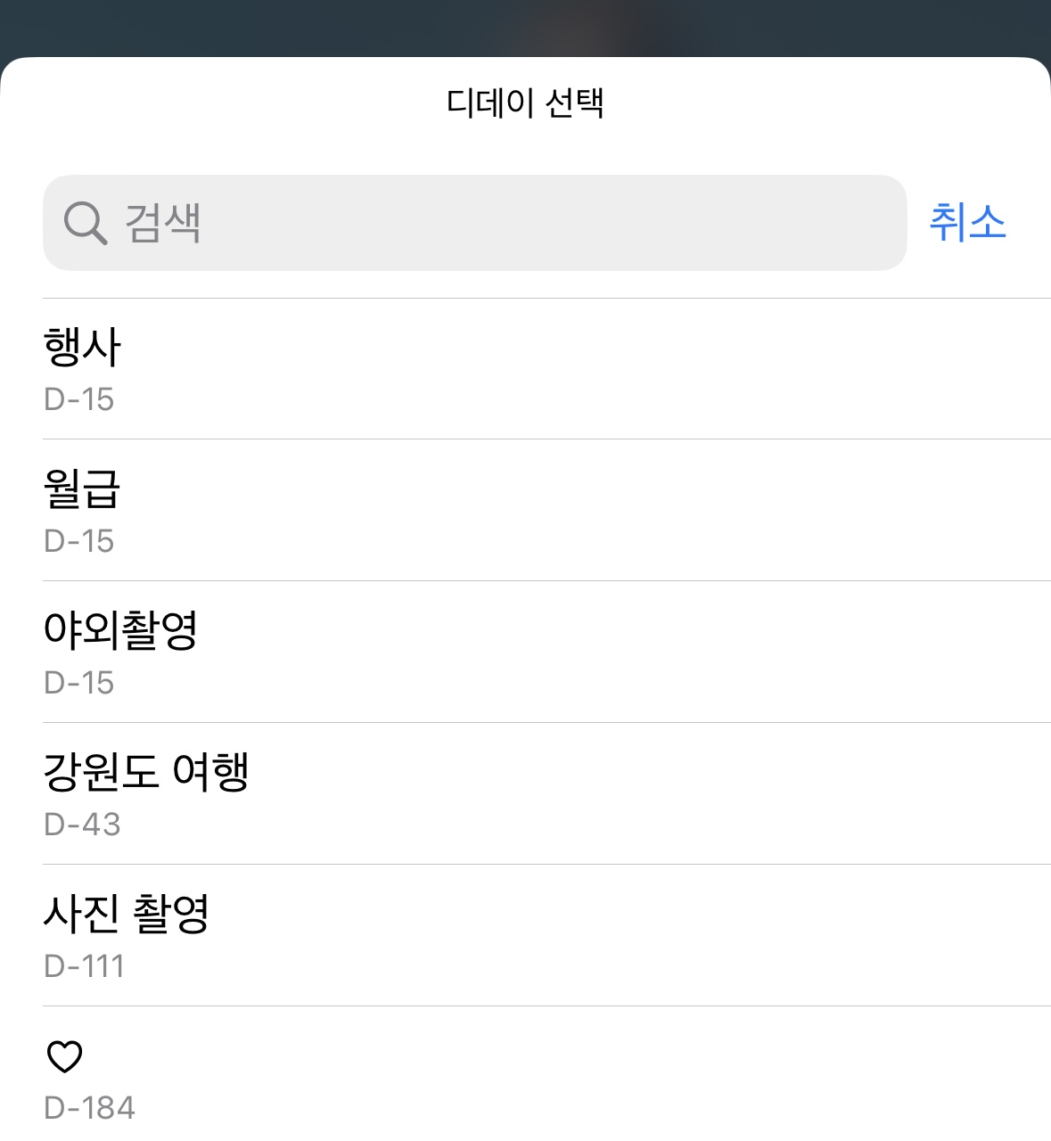 여러 디데이 중에 원하는 위젯에 표시될 디데이를 선택할 수 있습니다.