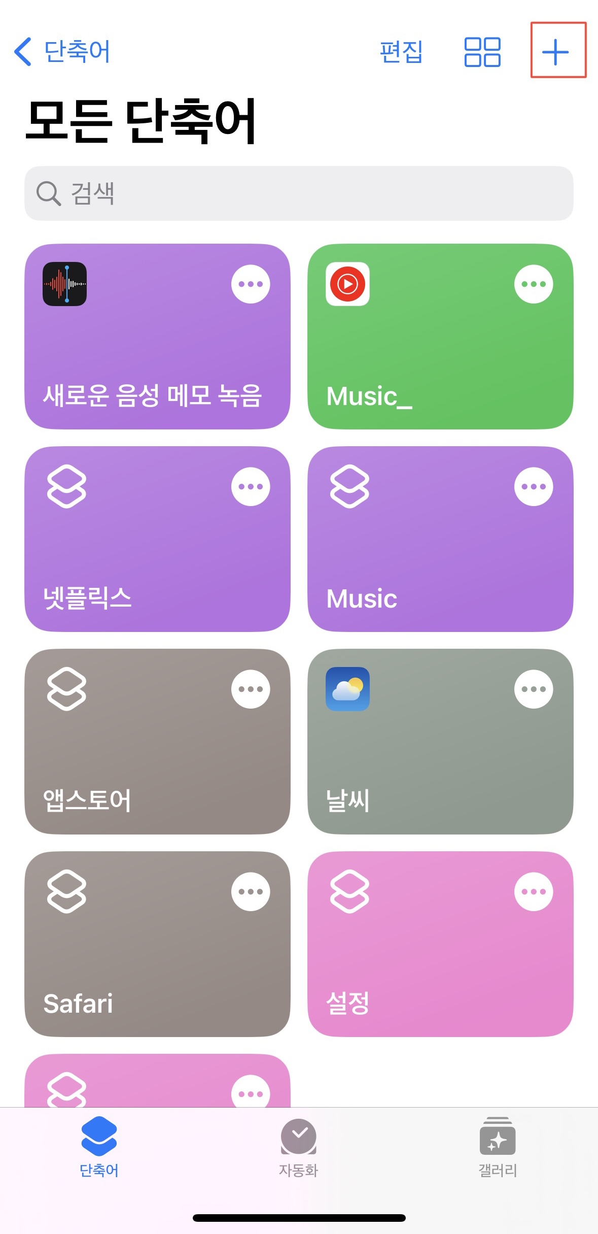 단축어에 들어가 상단 오른쪽에 + 아이콘을 눌러줍니다.