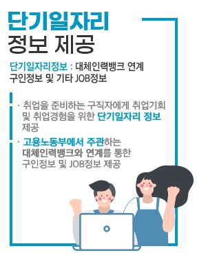 취업에 필요한 지원 뿐만 아니라 일잘러의 멘탈관리법, 온라인 진로체험 및 심리치료 지원소식, 꿈날개 뉴스레터 등의 다양하고 재미있는 컨텐츠와 취업경험을 위한 단기 일자리 정보도 제공합니다. 이 정보는 고용노동부에서 주관하는 대체인력뱅크와 연계하여 구인정보 및 직업정보를 제공합니다.