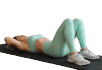 2. 양손을 귀에 대거나 머리을 감싸고 복부에 힘을 주면서 고개를 살짝 듭니다.