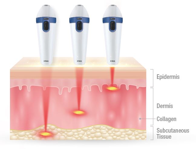 피부 표면을 손상시키지 않고 돋보기의 원리로 초음파 열을 진피층과 지방층에만 전달하는 하이푸 형식의 미용기기입니다. 열응고점을 만들어 피부층이 수축하고 당겨지면서 리프팅과 같이 쫙 달라붙게 됩니다. 그리고 피부층을 회복하는 과정에서 콜라겐이 생성되어 탄탄한 피부가 됩니다.