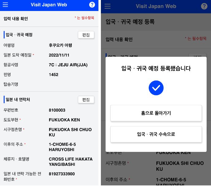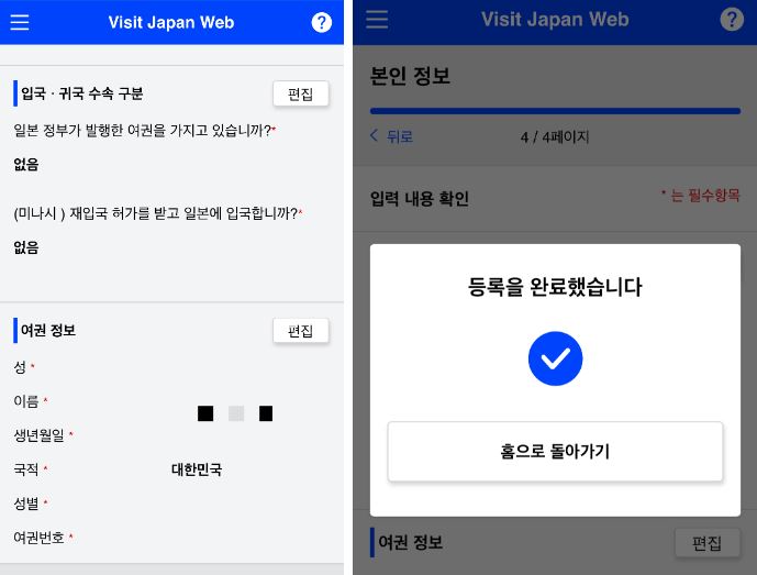 일본 공항에 도착하여 각 단계에서 생성한 QR 코드를 보여주면 되기에 편리합니다.