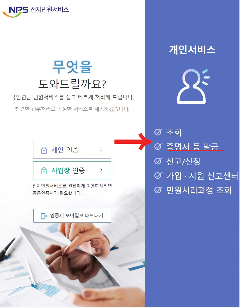 개인서비스 > 증명서 등 발급 – 국민을 든든하게 연금을 튼튼하게