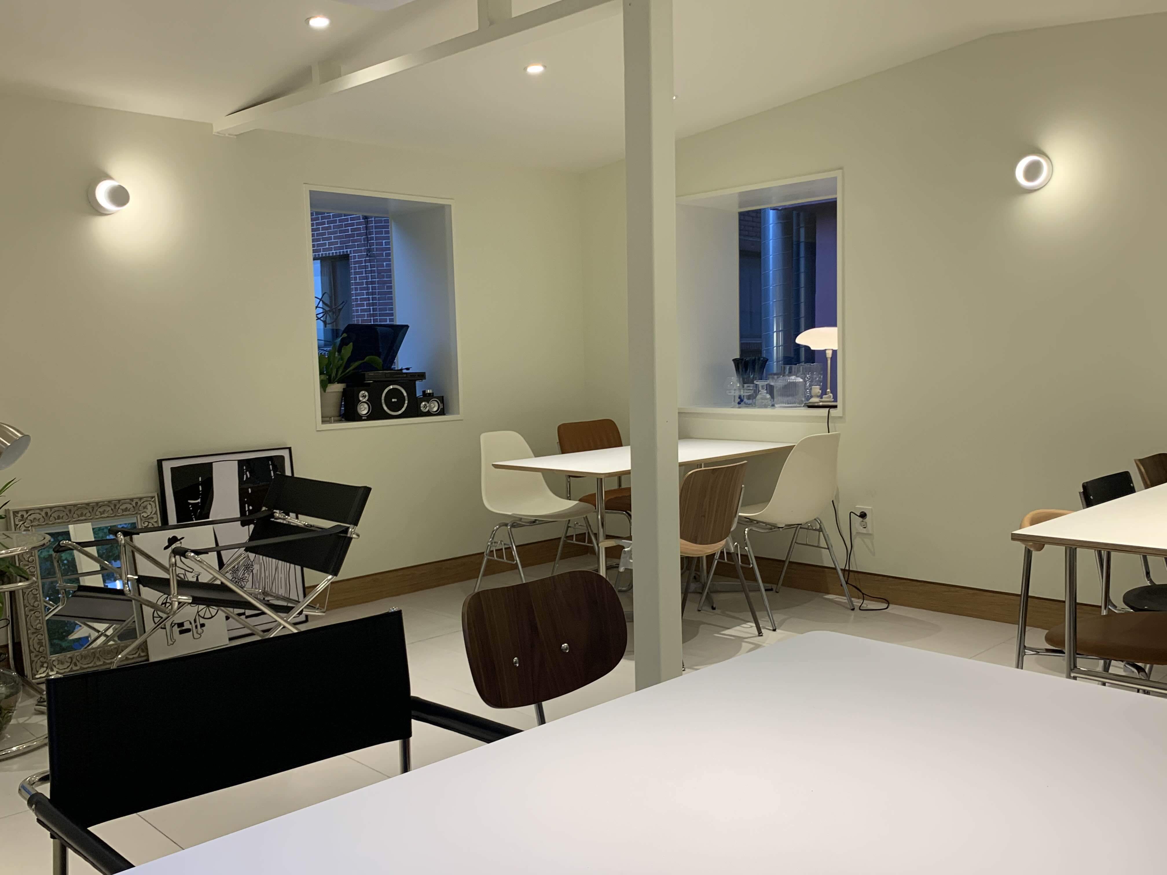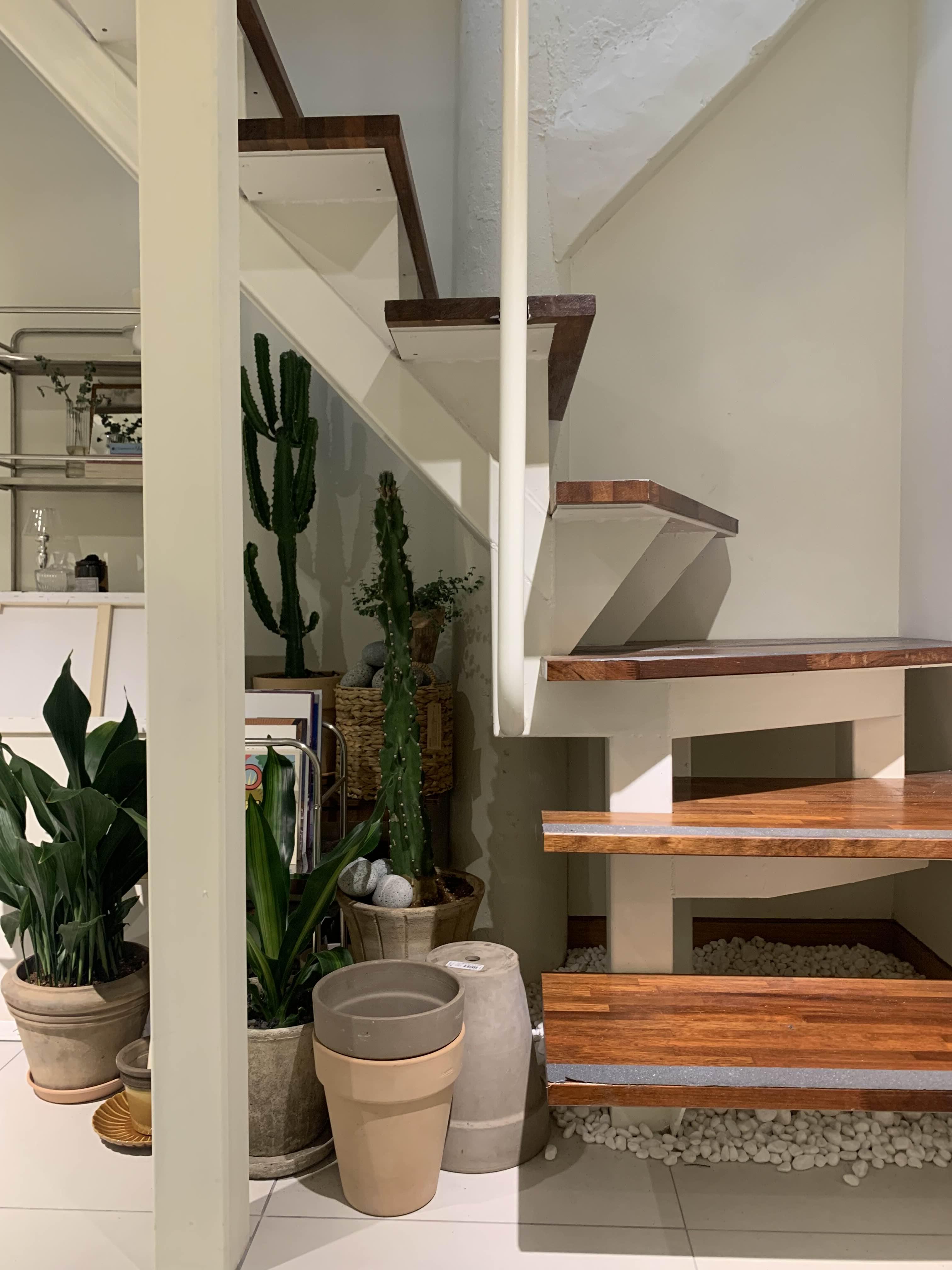 3층 입구와 천장에 큰 창이 있어 채광도 좋고 분위기 있어 보입니다.