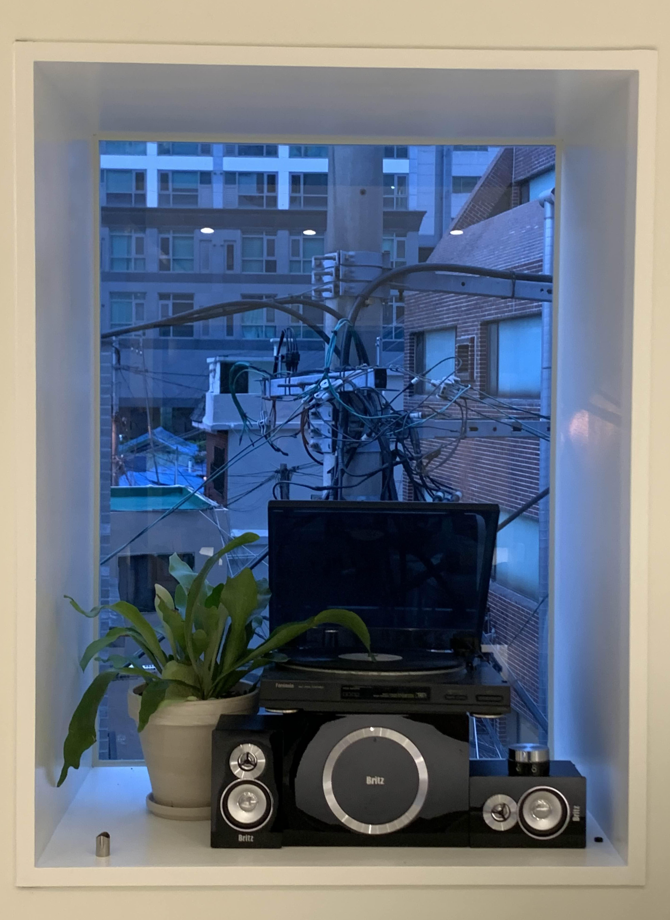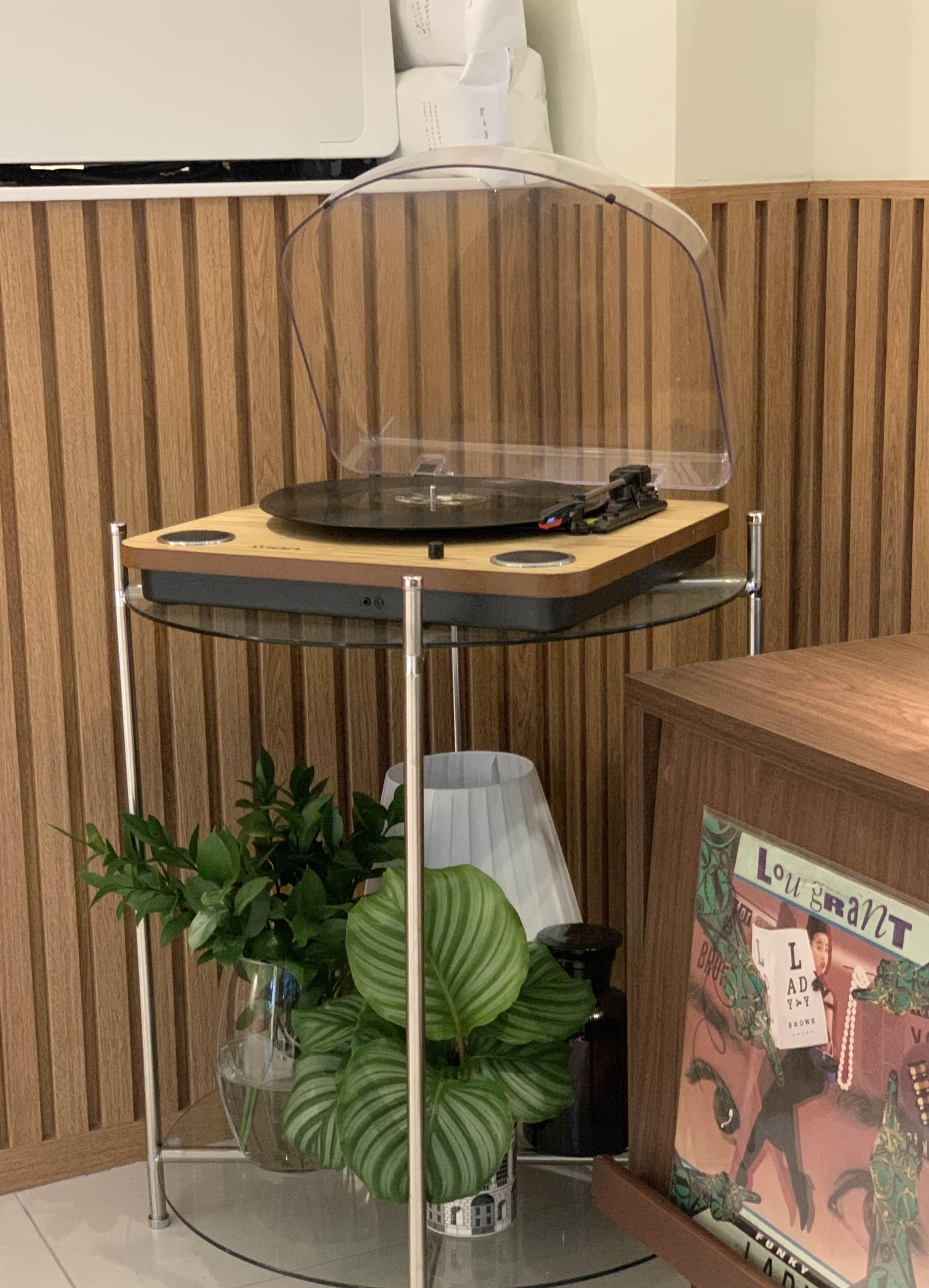 한쪽에 힙한 감성의 엘피판에서 노래가 흘러나오고 있었어요.