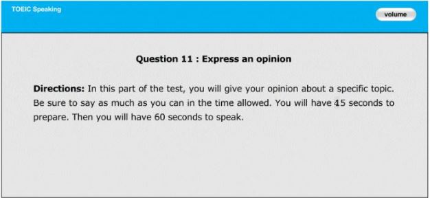 토익스피킹 파트5인 11번은 화면에 제시된 문제를 읽고 나의 의견을 말하는 5점자리 문제입니다. 서술은 60초 안에 논리정연하게 나의 의견을 말해야 하며 답변을 준비할 수 있는 45초의 시간이 주어집니다. 이는 토익스피킹이 개편되어 이전에 30초보다 준비시간이 조금 늘어났습니다. 이 준비시간 동안에 필기도 가능합니다.