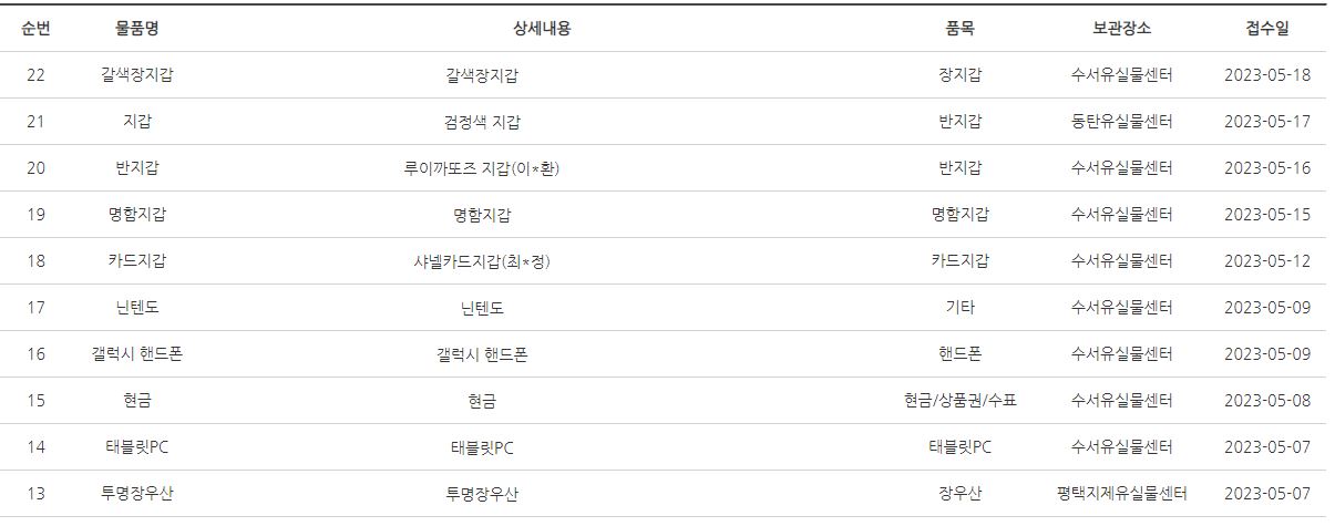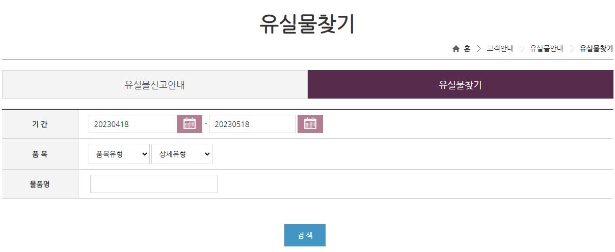 SR 홈페이지에 접속하여 유실물 찾기 카테고리에서 분실물을 검색할 수 있습니다. 이 유실물은 SR홈페이지에서 5일간 게시되며 물품은 7일간 보관합니다. 7일 동안 보관 이후에 유실자가 나타나지 않는 경우에는 관할 경찰서로 습득물이 이관됩니다.
